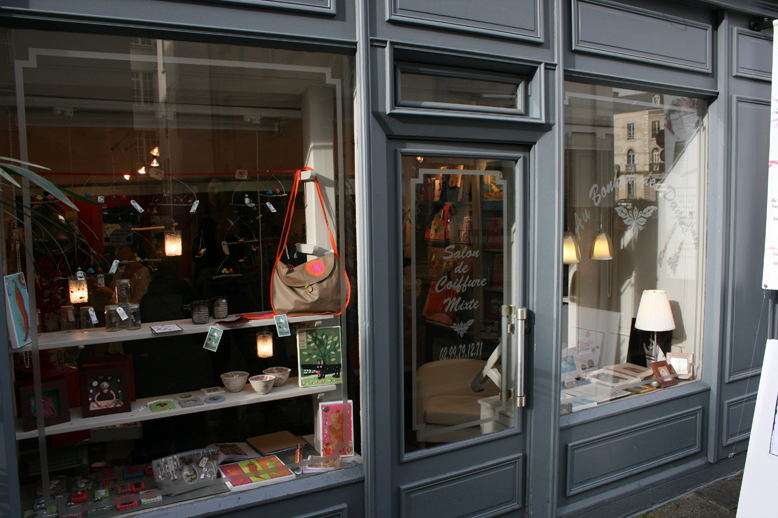 Nous avons trouvé un nouveau lieu atypique pour accueillir ce nouveau projet : le salon de coiffure Au bonheur des dames (4, rue Dreyfus à Rennes). Ce salon propose, toute l'année, des expositions de créations dans sa vitrine (et en ce moment, c'est mon travail qu'on peut y voir !). Mais, là Nadine et Jean-Michel ont souhaité, organiser avec nous un événement ponctuel sur un week-end réunissant plusieurs créateurs.